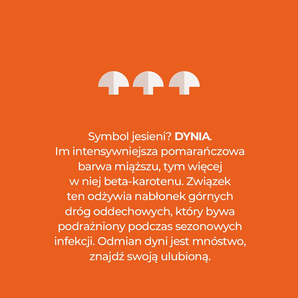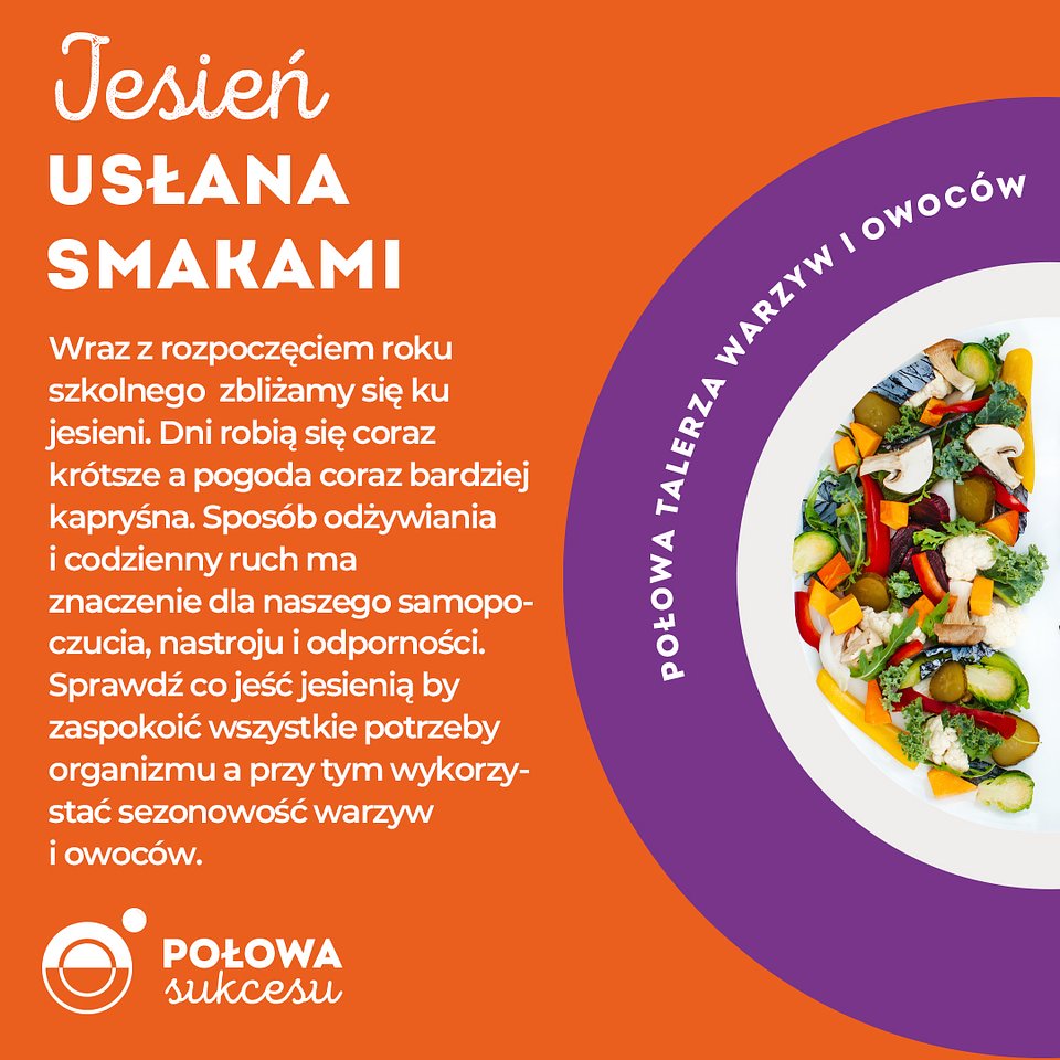 Dni robią się coraz krótsze a pogoda coraz bardziej kapryśna. Sposób odżywiania i codzienny ruch ma znaczenie dla naszego samopoczucia, nastroju i odporności. Sprawdź co jeść jesienią by zaspokoić wszystkie potrzeby organizmu a przy tym wykorzystać sezonowość warzyw, owoców i walory pieczarek. Więcej w materiale: Jesienny talerz żywieniowy
