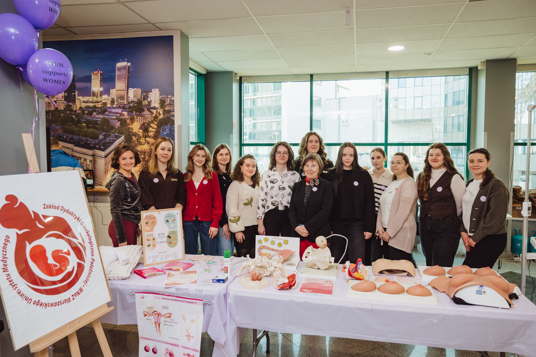 Edukacja zdrowotna, profilaktyka nowotworów i codzienna troska o ciało - to główne tematy działań przygotowanych przez Zakład Dydaktyki Ginekologiczno-Położniczej Warszawskiego Uniwersytetu Medycznego oraz Studenckie Koło Naukowe Położnych podczas wydarzenia „WUM supports Women”. Uczestniczki mogły nauczyć się samobadania piersi, dowiedzieć się więcej o badaniach cytologicznych oraz poznać ćwiczenia mięśni dna miednicy, które wspierają zdrowie kobiet na każdym etapie życia. W działania edukacyjne aktywnie zaangażowały się również studentki położnictwa.